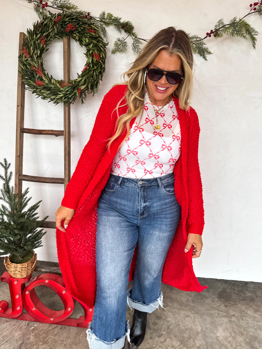 Red Checker Holiday Cloud Cardigan