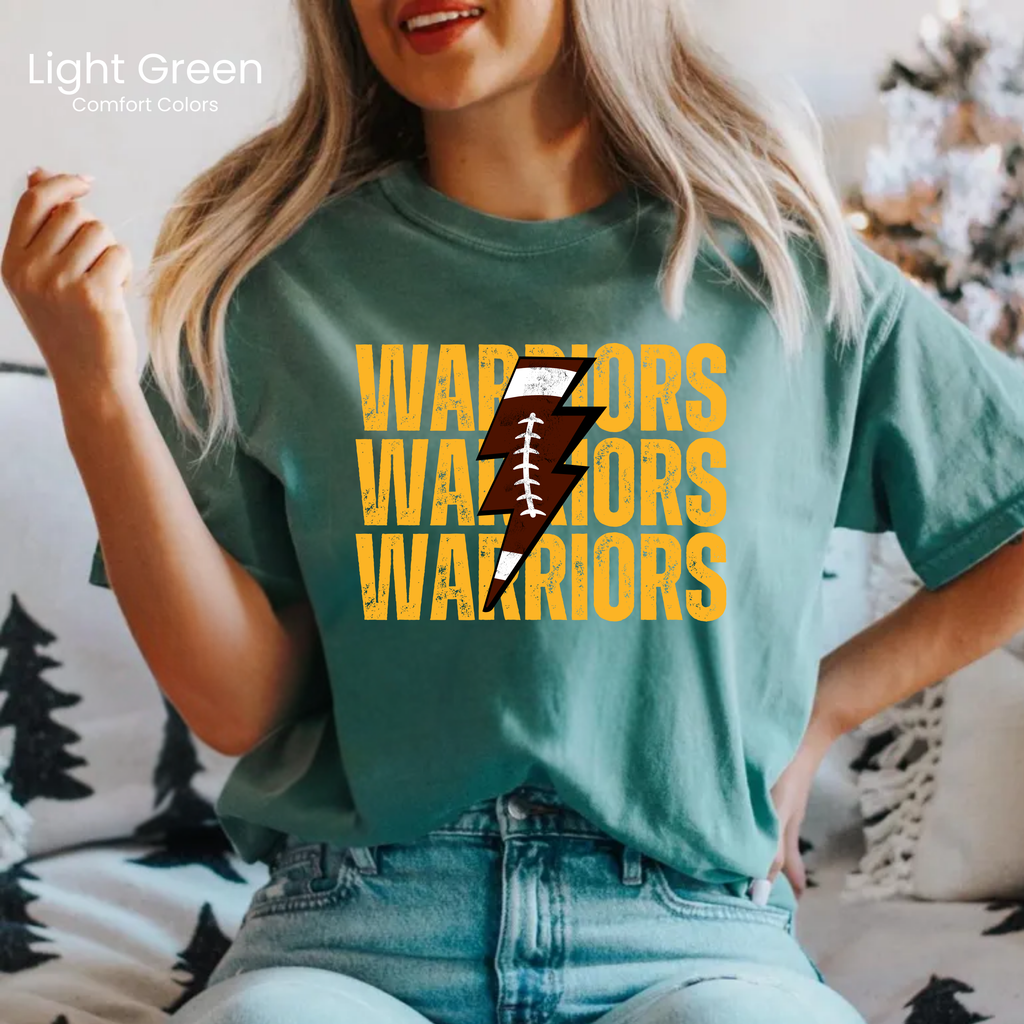 Comfort Colors Warrior Football Lightening Bolt Tee