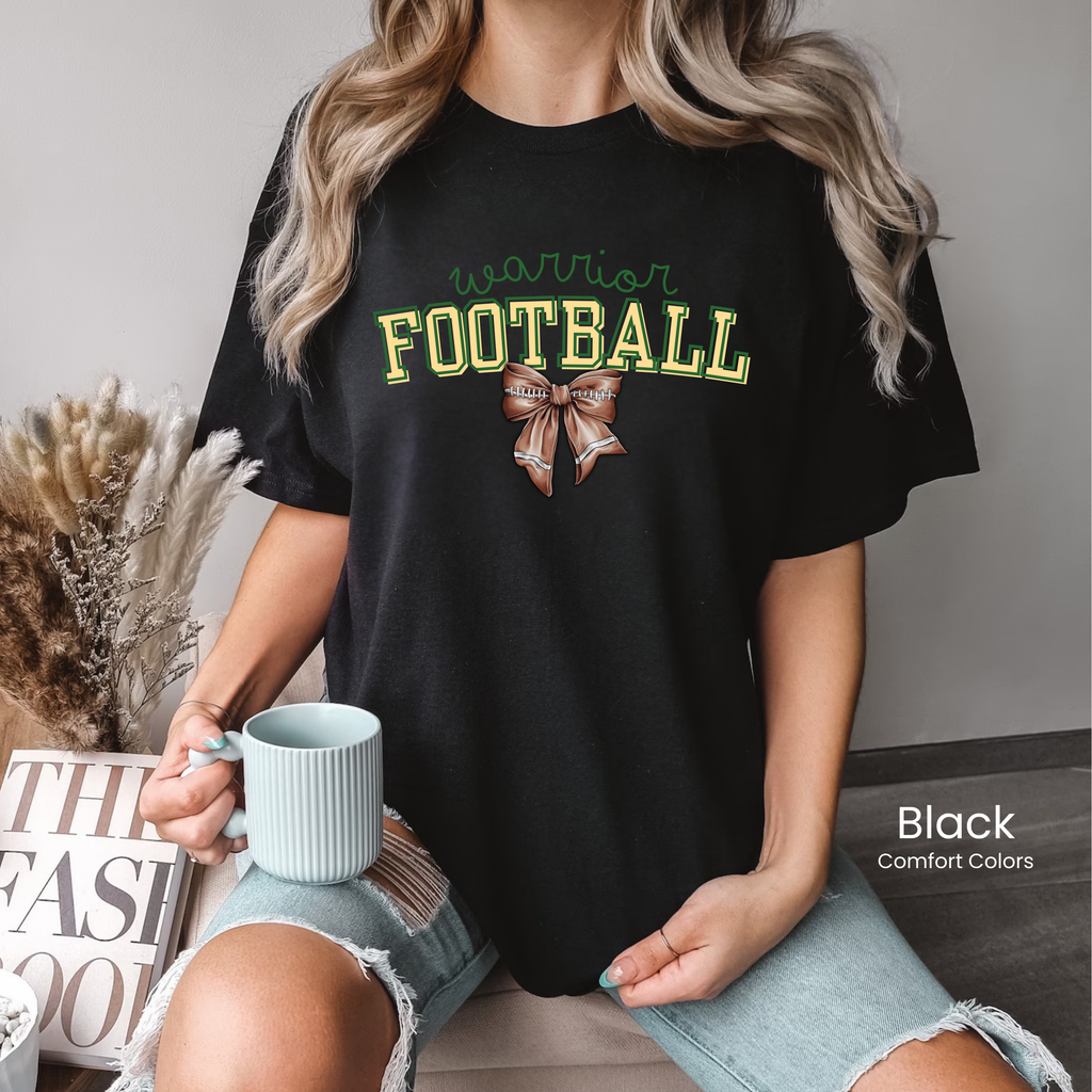 Comfort Colors Warrior Football Watercolor Bow Tee