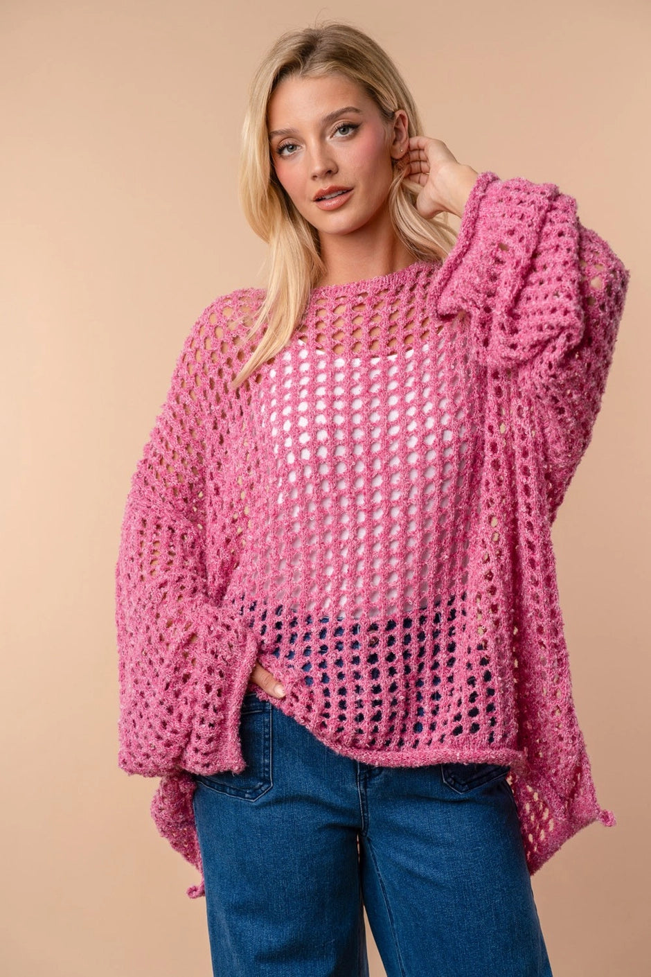 Pink Open Knit Pullover